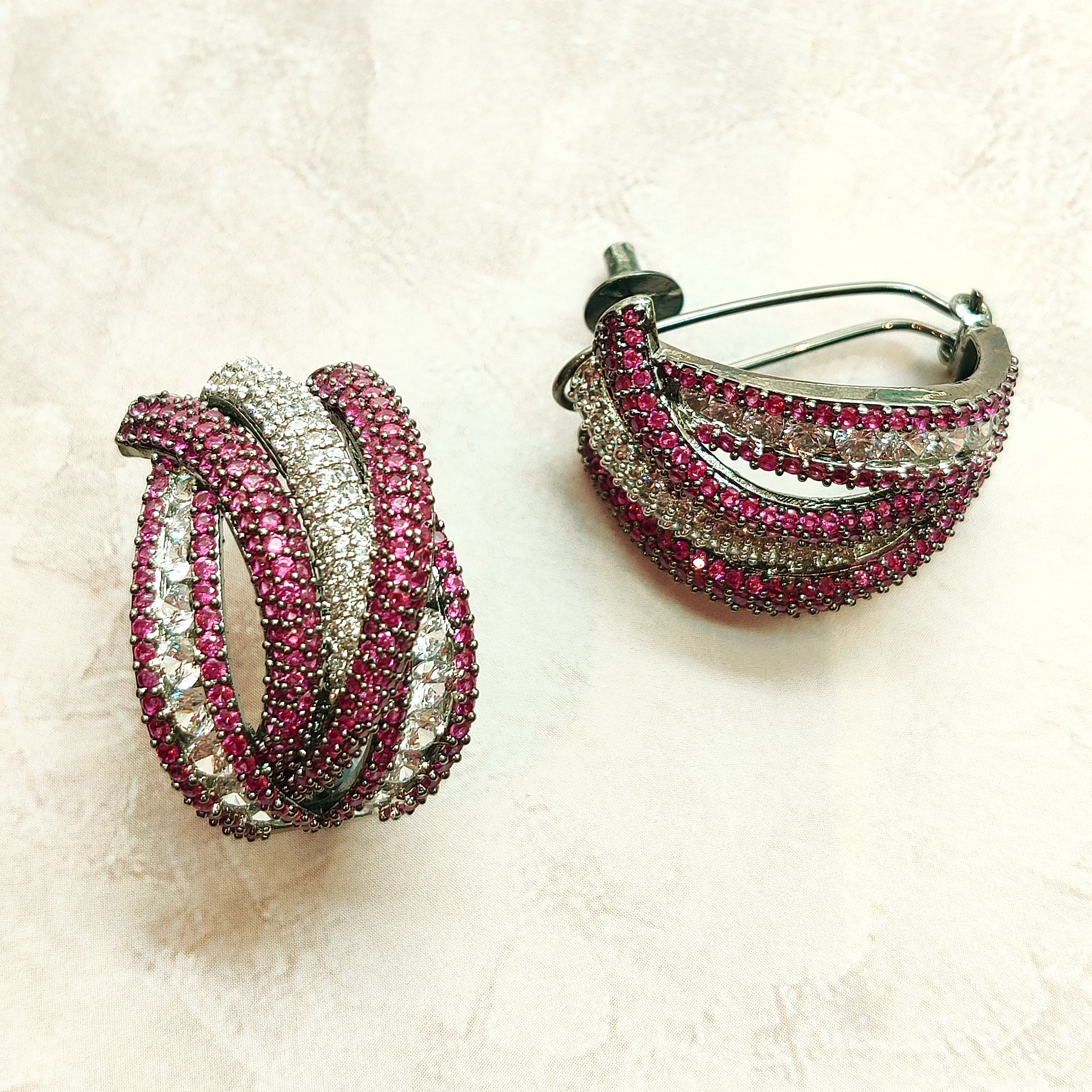 Floral earrings in small micro colour stones and diamonds  in invisible setting. The dainty look and feel of the earring is very pleasing to the eyes and looks absolutely stunning.